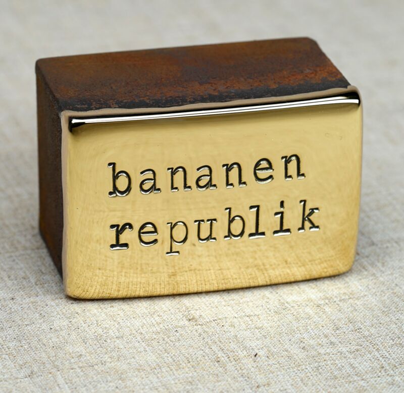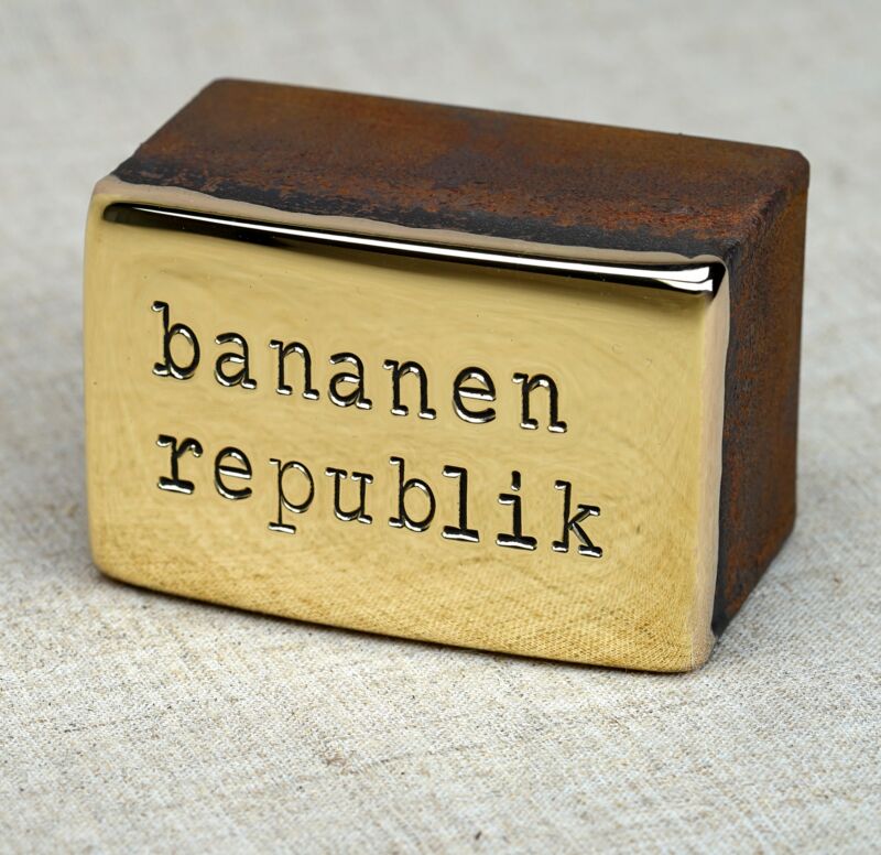UNIKAT 2026, Tafelmessing, Cortenstahl, kann jederzeit nachpoliert werden, 7,5 x 5 x 4 cm