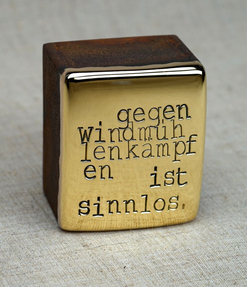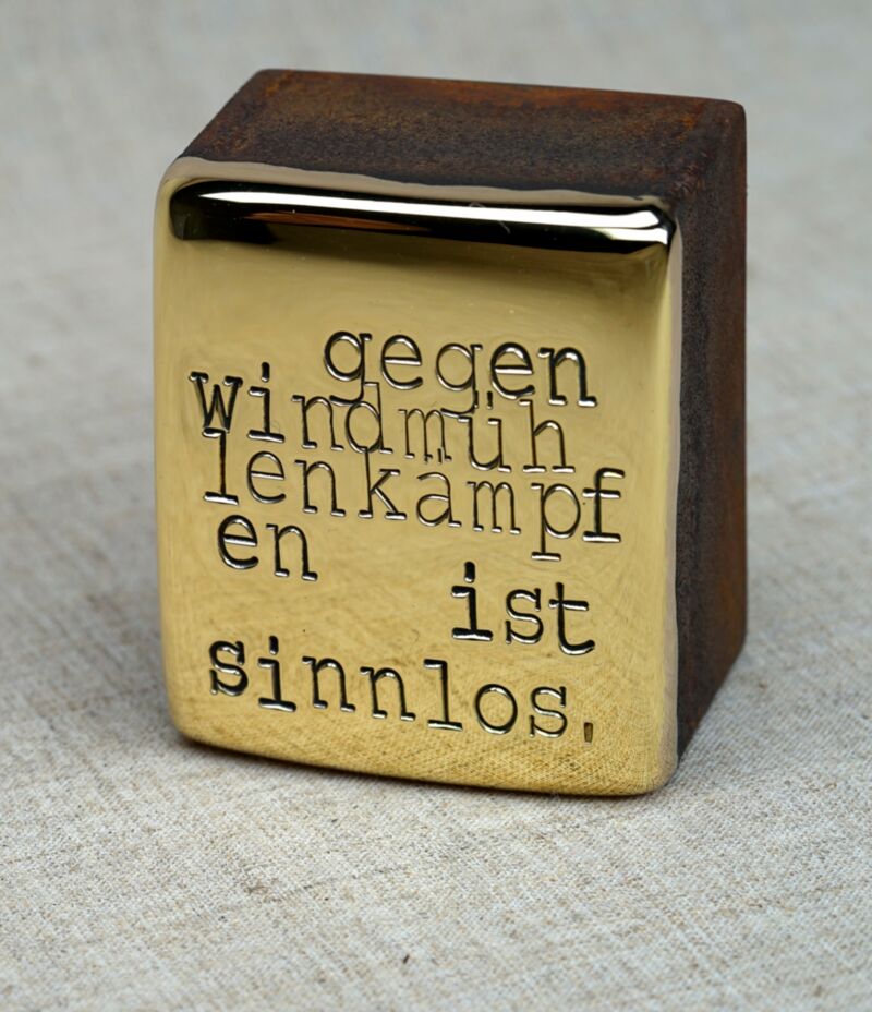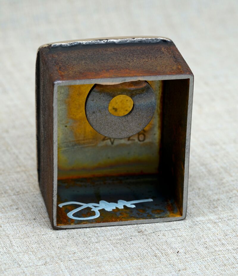 UNIKAT 2026, Tafelmessing, Cortenstahl, kann jederzeit nachpoliert werden, 7 x 6 x 4 cm