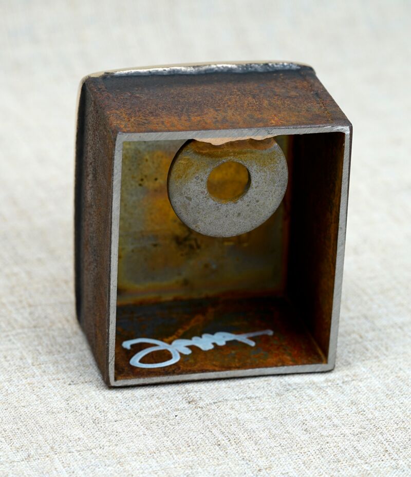 UNIKAT 2026, Tafelmessing, Cortenstahl, kann jederzeit nachpoliert werden, 7 x 6 x 4 cm