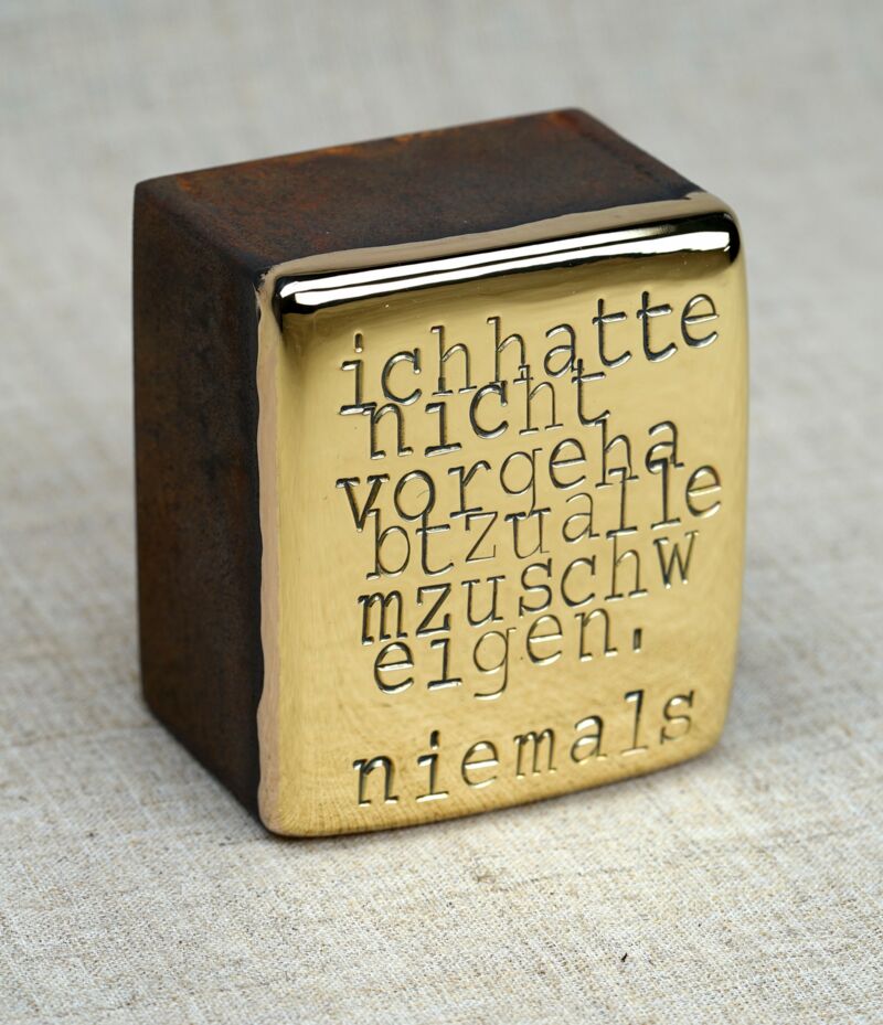 UNIKAT 2026, Tafelmessing, Cortenstahl, kann jederzeit nachpoliert werden, 7 x 6 x 4 cm