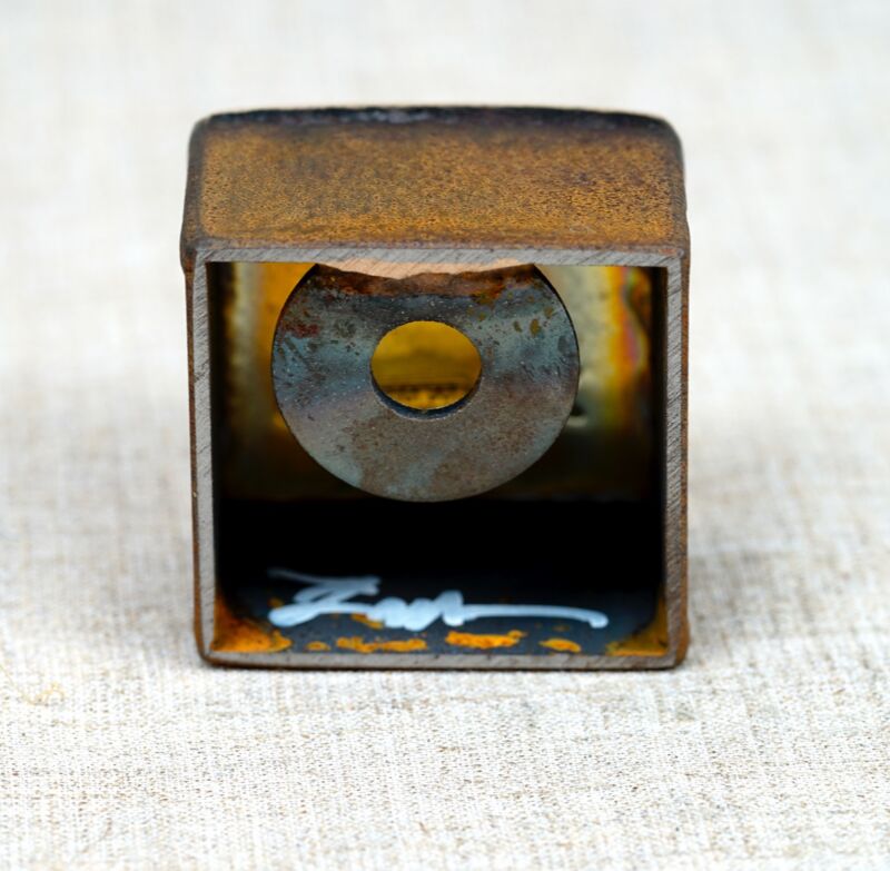 UNIKAT 2025, CORTEN, Tafelmessing, kann jederzeit nachpoliert werden, 4,5 x 4,5 x 3,5 cm